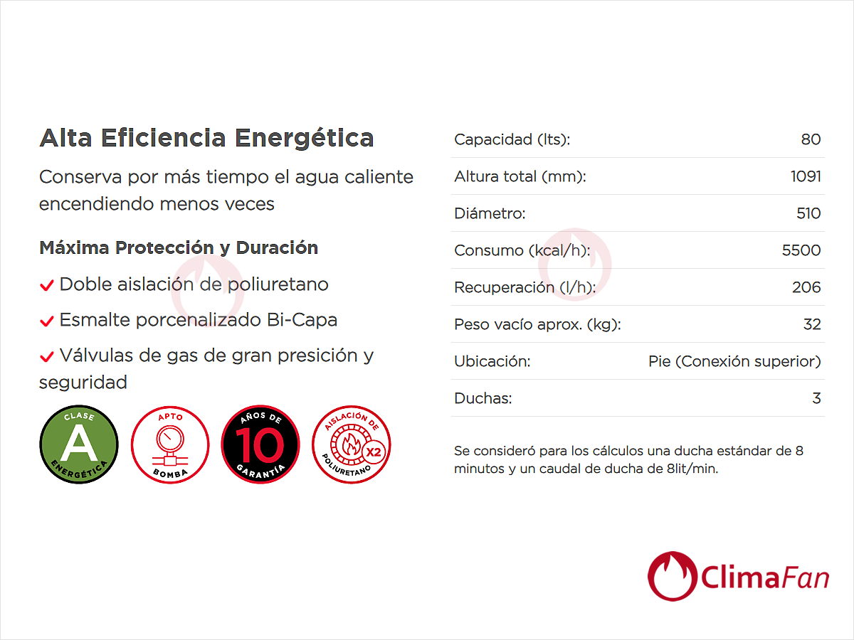 - Capacidad (lts): 80