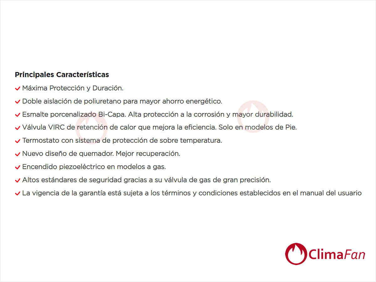 Válvula VIRC de retención de calor que mejora la eficiencia. Solo en modelos de Pie.